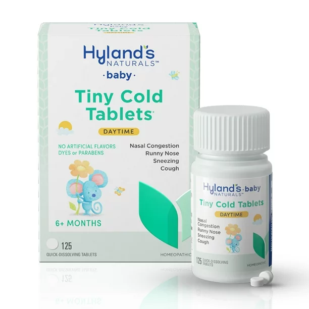 - 125 TABLETS=UP TO 62 DOSES of Hyland’s Naturals Baby Tiny Cold Tablets